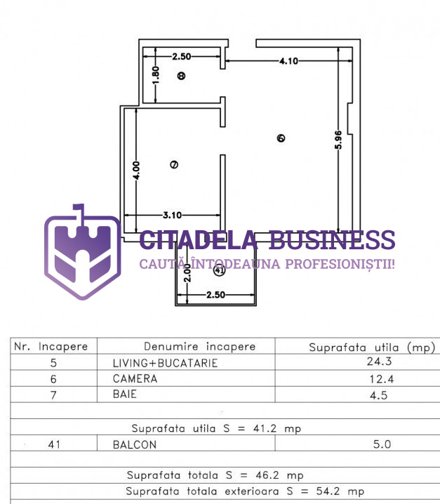Suprafata utila cu balcon: 46,04 mp