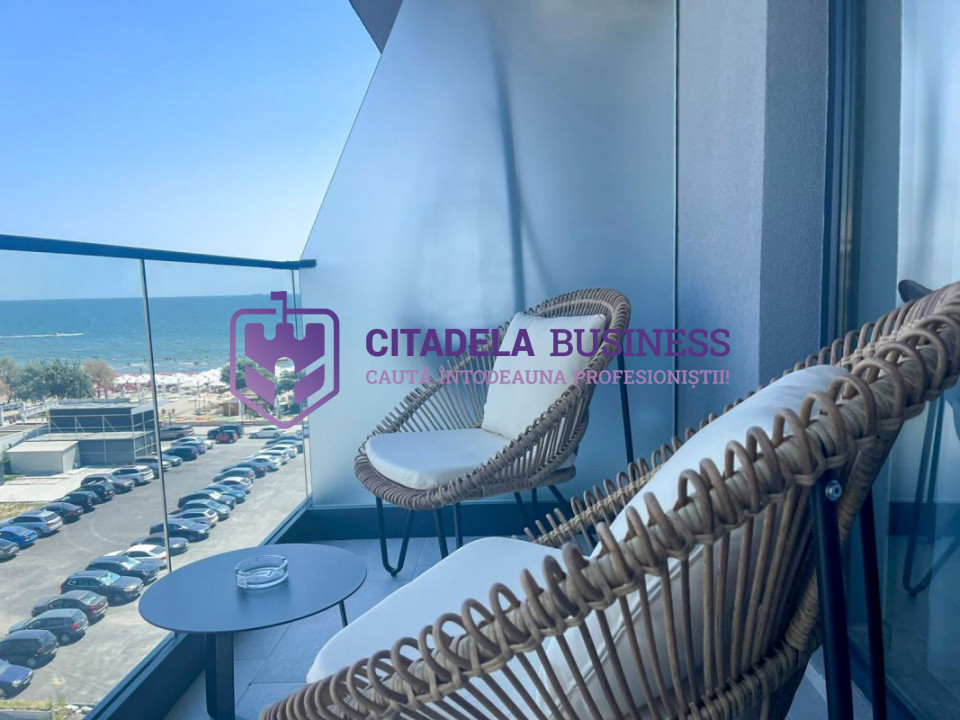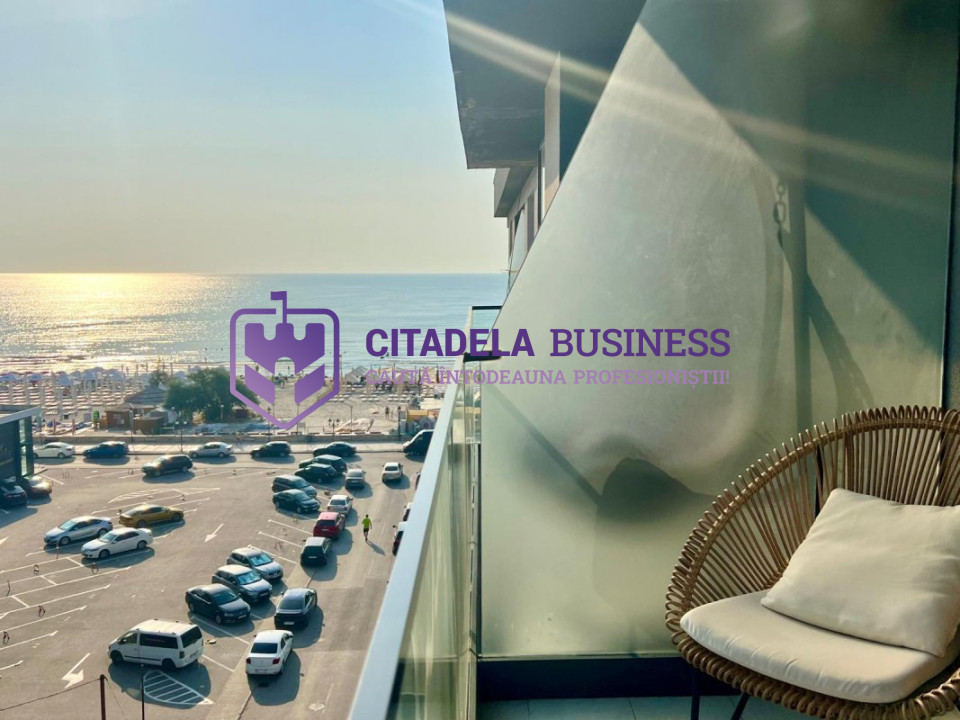 MAMAIA NORD- Apartament 2 camere cu vedere la mare si loc de parcare la subsolul blocului. Pozitia excelenta in prima linie la mare, cu vederea catre plaja atat din living cat si din unul din cele doua balcoane, finisajele interioare si mobilierul de calitate, designul modern in culori armonioase, fac din aceasta locatie, proprietatea perfecta atat pentru petrecerea vacantelor cat si pentru a locui permanent. Apartamentul este situat la etajul 5 al unui bloc cu 6 niveluri construit in 2021, are centrala pe gaz, calorifere, aer conditionat, se vinde mobilat si utilat.
