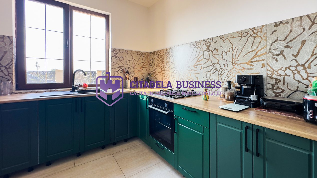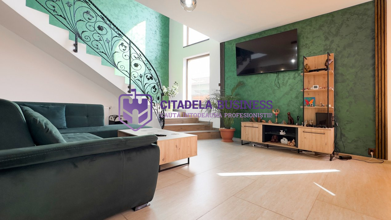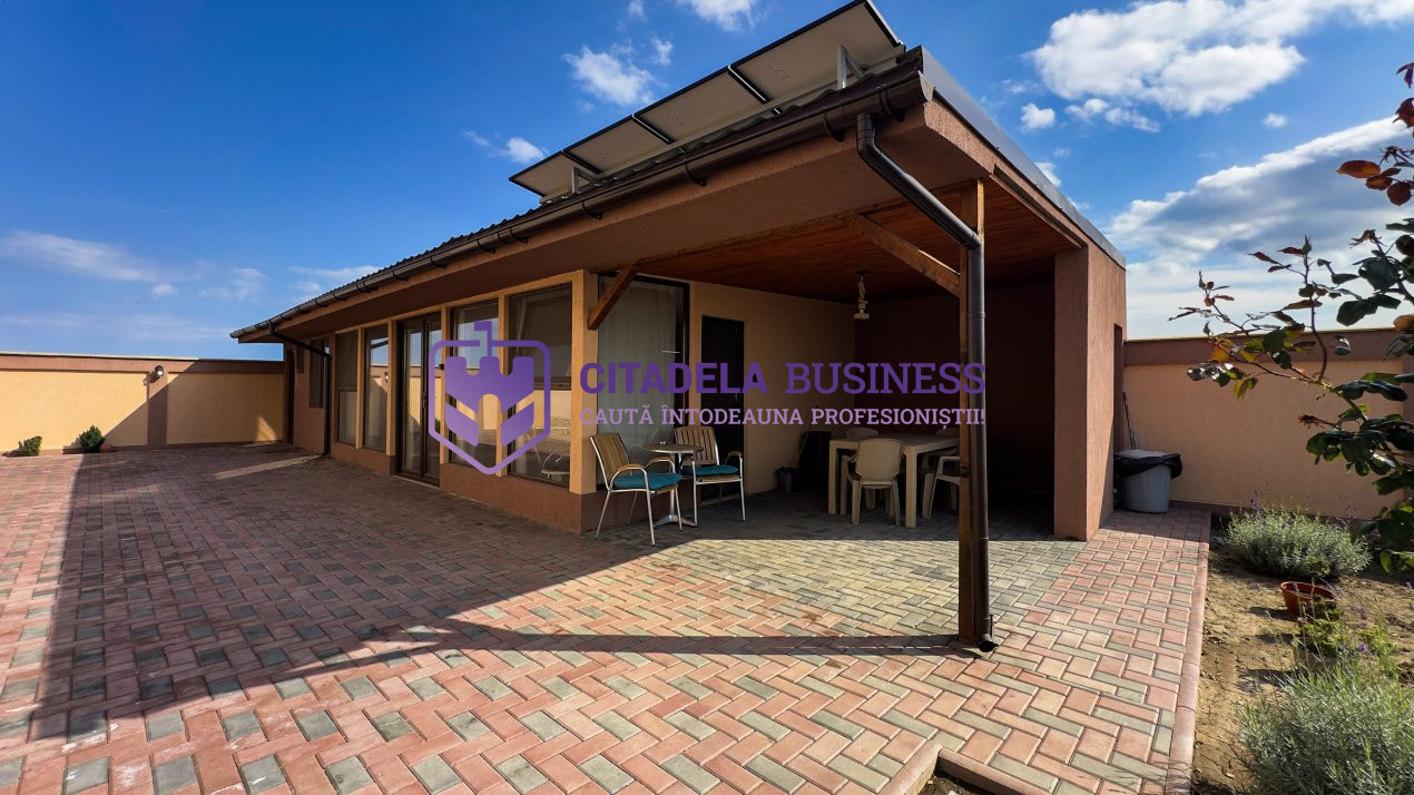 Un avantaj major îl reprezintă independența energetică, datorită sistemului de panouri fotovoltaice și centralei inteligente pe peleți, care asigură costuri reduse și eficiență maximă. Proprietatea include și un garaj cu acces direct în casă, precum și o terasă închisă de 90 mp, construită ca spațiu de relaxare și socializare, dotată cu toate utilitățile necesare pentru a fi folosită pe tot parcursul anului.