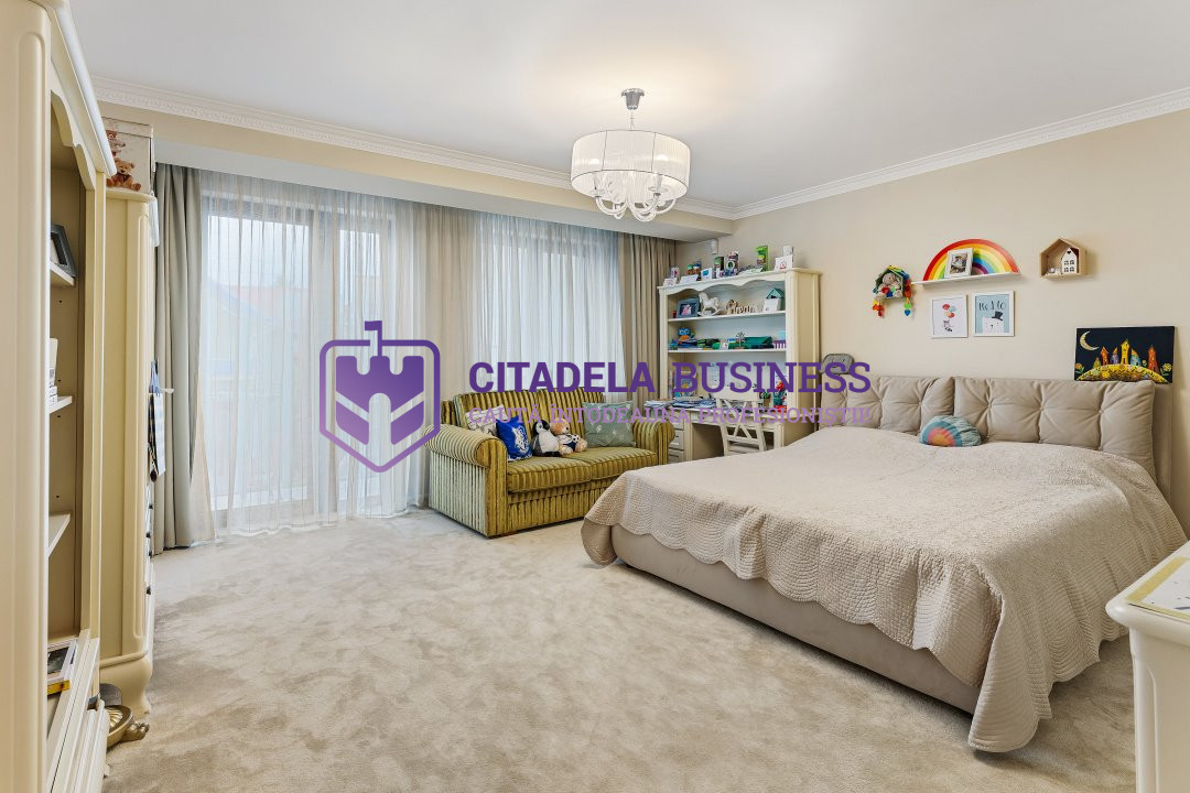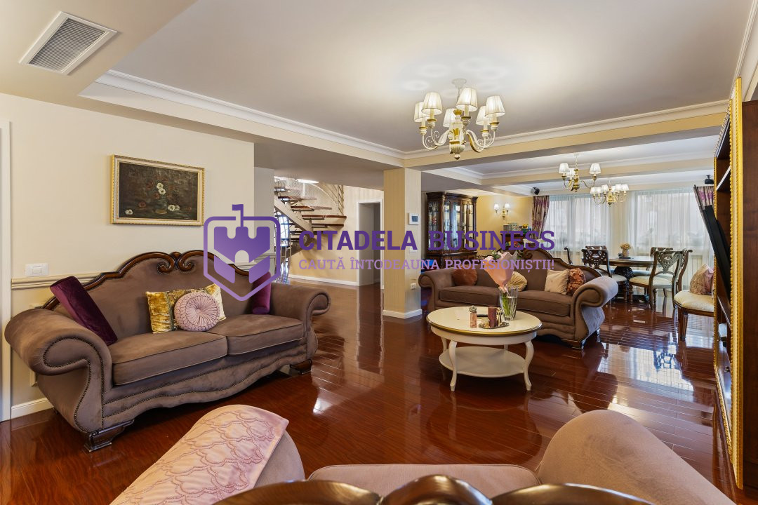Compartimentare: 4 dormitoare, birou, living generos, cameră de dining, bucătărie închisă, 3 băi + demisol.