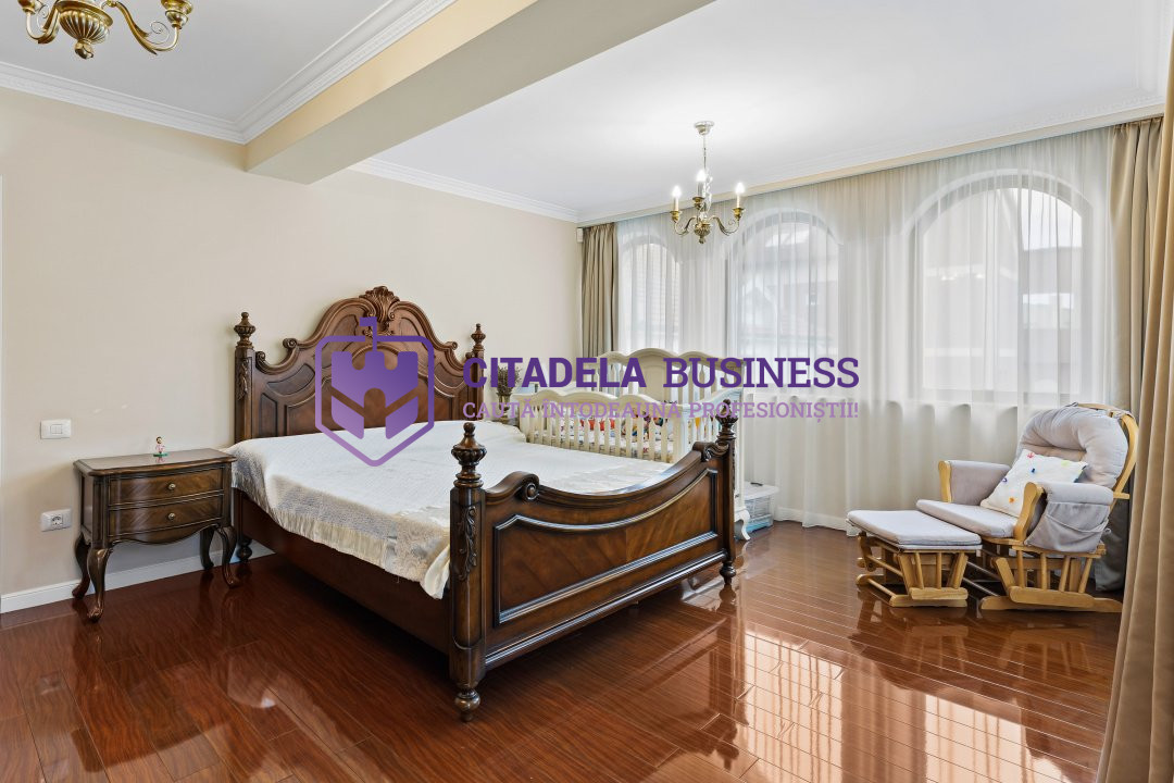 Cu 318 mp utili, vila oferă un living amplu, o bucătărie închisă, separeu de dining, birou, 4 dormitoare, 3 bai, o sauna privata și un garaj in demisol util pentru depozitare sau spații tehnice. Garajul beneficiaza de poarta electrica pe telecomanda.