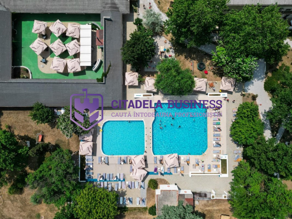 In centrul statiunii Mamaia, complexul Mercur – Minerva include 18.000 mp construiti. Afacere la cheie intr-una dintre cele mai ravnite locatii de pe litoral. 302 camere, restaurant cu capacitate de 500 de locuri, parcari, gradinita, terenuri de tenis, doua piscine, club, doua hoteluri de 3 stele, vila de 4 stele, locuri de joaca pentru copii, all inclusive, randament solid.