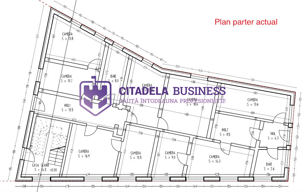 Suprafața totală desfasurată a imobilului este de 657 mp